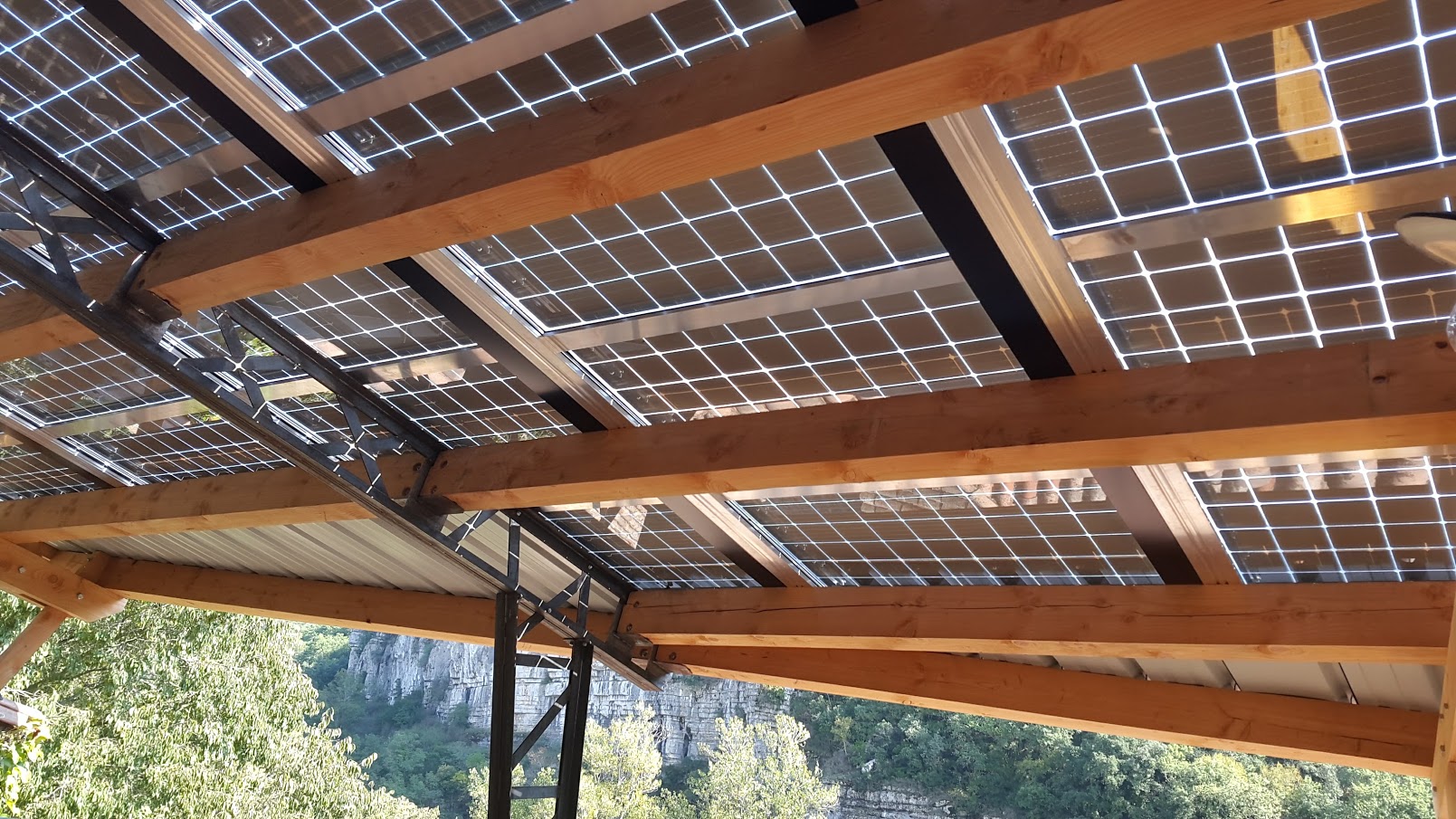 La centrale solaire, d’une puissance de 12.9 kWc, est implantée sur le toit et la terrasse d’un des bâtiments du Viel Audon à Balazuc. Elle a été mise en exploitation le 26 septembre 2018 (9 kWc) et a bénéficié d’une augmentation de puissance le 1 mars 2019.